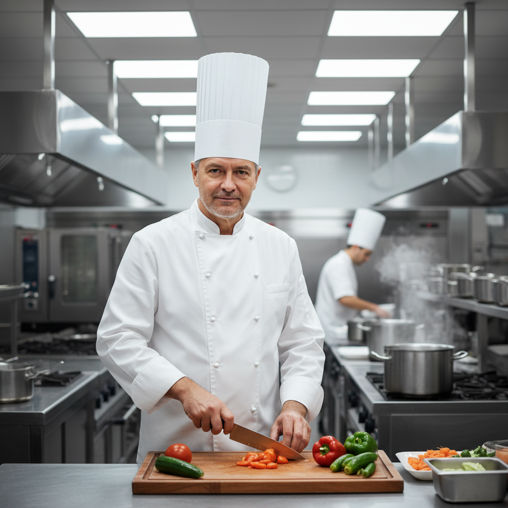Esempio di narrazione per la seconda generazione che porta avanti la tradizione familiare. Qui si può raccontare come l'esperienza e la formazione professionale si uniscono al rispetto delle ricette tradizionali, creando un ponte tra passato e presente nella cucina del ristorante.